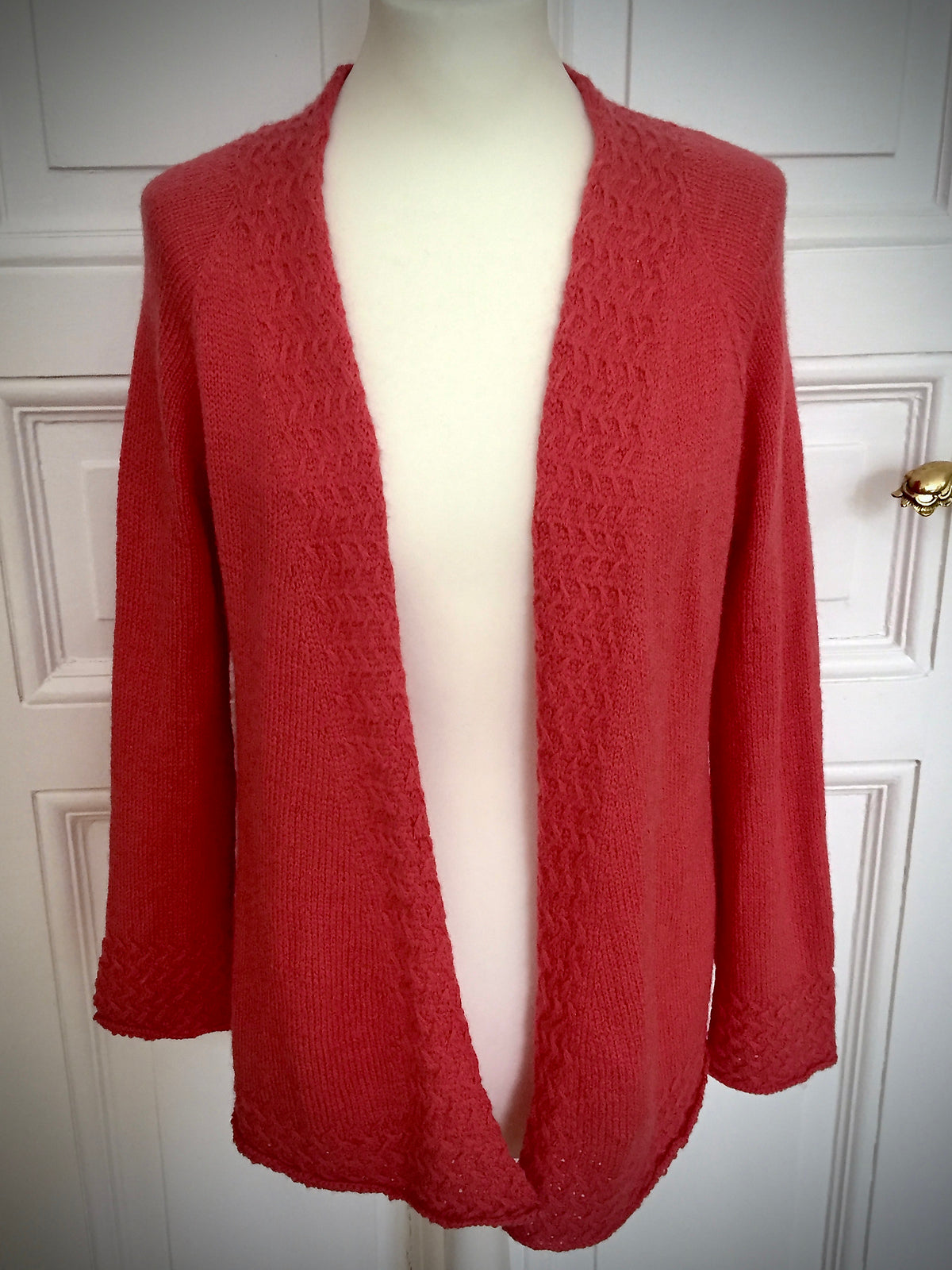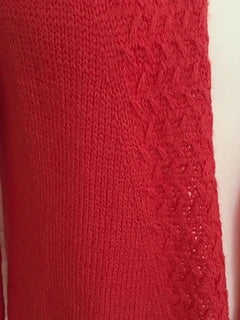 Chilipepper.ding is a cuddly cardigan with a sophisticated pattern. It starts with a provisional cast on in the neck. In both directions, the collar is worked in one piece in the pattern, before you pick up stitches out of the resulting edge for the body. With increases in the raglan slopes, it continues until the sleeves are separated. From the waist down, the body is formed with short rows before the cuff with pattern finished the body. The pattern panel runs from the beginning, so that a later pick up of stitches is not necessary. Finally the sleeves are worked, which also complete with pattern cuffs.