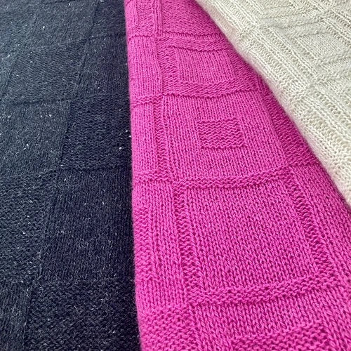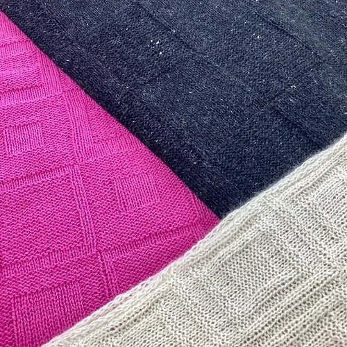 HOKEI II hat strukturierte Muster mit Strick- und Kettmaschen und i-cord-Kanten. Das Muster bietet drei Versionen: Version 1 hat ein einfaches quadratisches Raster, das für dunkle Garntöne ausreicht; Version 2 hat ein doppeltes quadratisches Raster, das besonders bei mittleren und hellen Garntönen gut zur Geltung kommt; die dritte Version ist noch strukturierter mit 4 ineinander verschachtelten Quadraten, auch hier empfehlen wir die Verwendung mittlerer oder heller Garntöne. HOKEI II ist von unserem HOKEI-Schal inspiriert, aber anstelle von farbigen Intarsienquadraten setzt HOKEI II Farbe in Textur um. Version 1 ist für Anfänger geeignet, Version 2 und 3 für fortgeschrittene Anfänger. Die Anleitungen sind ausgeschrieben, der Musterrapport ist ebenfalls eingezeichnet. Die Anleitungen sind für 3 Größen pro Muster angegeben. Die Anleitung gibt es bei Ravelry.